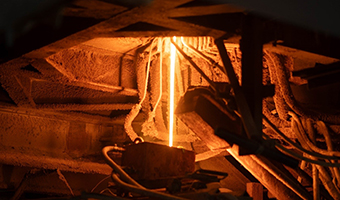 The mixture is melted at high temperature in an electric or gas furnace.